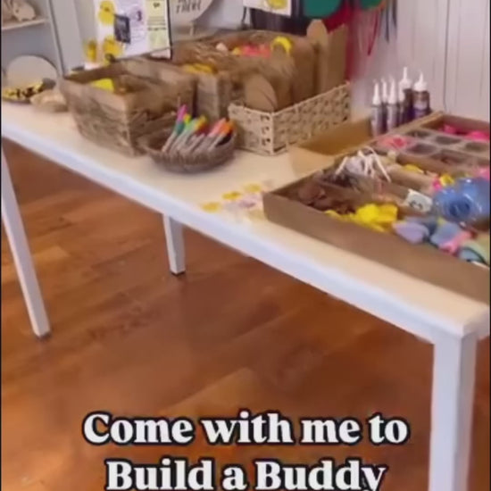 Bring a new plush friend to life with our Build A Buddy kit. Each box includes your Buddy and his accessories. Choose to finish the project in our studio with a guide from the team or take it home for a birthday party craft. Add outfits, and mini accessories to give every Buddy a style that is one of a kind.